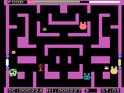 Though there’s no dialogue or character backstory, the game hints at a playful world where food and danger intersect in odd ways. The choice of items—mundane hamburgers, bright red apples, and oversized stop signs—adds to the quirky atmosphere. Each level’s design suggests a different thematic twist on the basic maze layout, giving players a sense of progression even in the absence of narrative exposition.