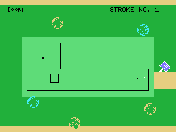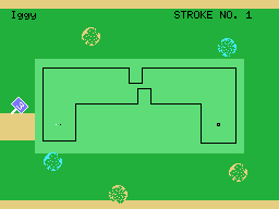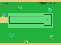 Mini Golf offers a straightforward, top-down simulation that distills the essence of a camping-ground putting green into a digital experience. You control a white dot (your club) around a black dot (the ball) using either a joystick or the cursor keys. The position of the club relative to the ball determines your shot angle, while the distance between them sets the force of your putt.