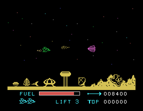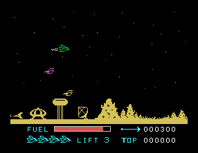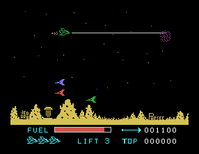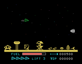 Although Parsec hails from the early days of home computing, the graphics still shine with a clean, colorful aesthetic. The alien craft are rendered in bright, distinct shapes that make them easy to identify at a glance. Backgrounds scroll smoothly, lending a sense of speed and depth to each level.