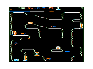 Visually, Cave Walker represents a clear evolution over Downland. The game’s cave environments are richer and more detailed, featuring layered backgrounds that give a genuine sense of depth. Subtle lighting effects highlight key pathways, while ambient particle effects—dripping water, floating dust—lend an atmospheric polish to each subterranean chamber.