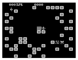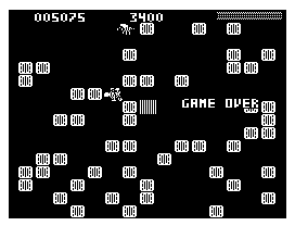 Graphically, Ice Master opts for a clean, minimalist presentation. Running in black-and-white high-resolution mode by default, the game’s stark contrasts emphasize the crisp outlines of both the ice blocks and the insect foes. There’s an elegant clarity to each sprite: your little man’s shivering stance, the insect’s jittery legs, and the subtle cracks that foreshadow when an ice block is about to shatter.