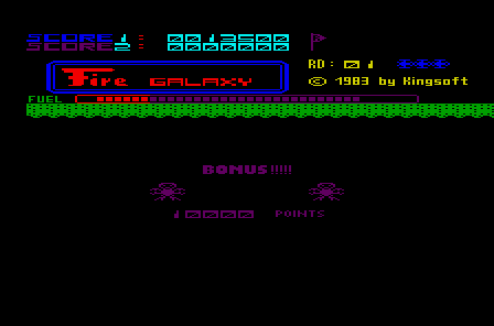 Explosions and weapon effects are simple but satisfying. The laser blasts fire in neat, bright lines, and bomb detonations shake the screen momentarily, reinforcing the impact of your actions. Although Fire Galaxy doesn’t push the technical envelope, it embraces a retro aesthetic that feels authentic to early ’80s arcade shooters, making it a perfect pick for nostalgia seekers and collectors.