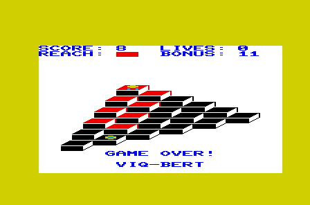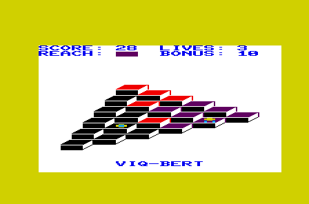 VIQ-Bert adopts the classic Q*Bert formula with a minimalist twist. You guide your character across a 3D pyramid, hopping from block to block to change their color. The core mechanic is as simple as it is addictive: land on every block to clear the level, but remain vigilant—one wrong move and you could fall off the edges, costing you a life.