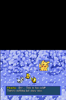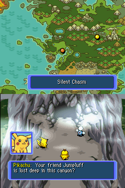 On the Nintendo DS, Blue Rescue Team’s visuals strike an impressive balance between charming sprite work and functional UI design. The top-down view presents each dungeon floor in crisp, colorful detail, with environmental effects—like lava flows, ice patches, and shifting shadows—clearly conveyed despite the handheld’s modest resolution. Pokémon sprites are instantly recognizable, with little touches such as blinking eyes or animated attack motions lending personality to every creature.