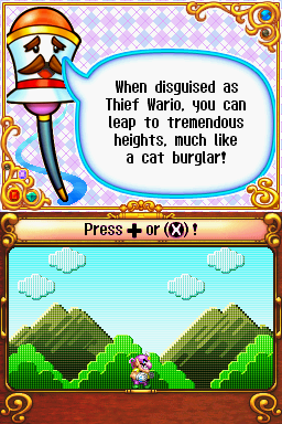 The narrative of Wario: Master of Disguise is deliberately lighthearted and comedic, revolving around Wario’s eternal quest for wealth. After watching a TV show about a master thief, he crashes the production to steal a magical disguise wand. This premise provides a fun excuse for the game’s episodic structure, as each TV-show “episode” serves as a self-contained level with its own theme and boss.