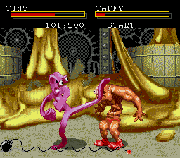 Special effects deserve special mention: bursts of confetti when Helga lands a signature opera scream, snowflakes that swirl around Bad Mr. Frosty mid-combo, and splatters of goo whenever Blob crashes into the ground. These details elevate the fight scenes from simple sprite swaps into lively claymation setpieces. Though the resolution is rooted in 16-bit era constraints, the creative use of frames and textures makes Clay Fighter stand out among contemporaries.