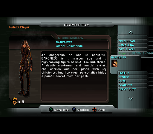 Character variety is a highlight, with twelve distinct Joes to unlock as you progress through the campaign. Each operative falls into one of three categories—Commandos excel in close quarters, Heavy Weapons specialists dominate long-range engagements, and Soldiers offer a balanced skill set. While the differences between these roles aren’t always dramatic, they encourage experimentation and replaying stages with different loadouts to suit your play style.