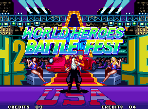 Visually, World Heroes 2 Jet continues the series’ tradition of bold, colorful sprite work. Character animations are slightly more polished compared to the original World Heroes 2, with smoother walk cycles and attack frames that pop on-screen. Every fighter has a distinct silhouette, making it easy to recognize opponents even in the heat of battle.