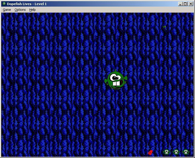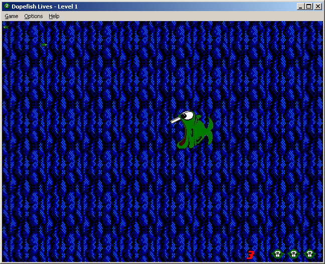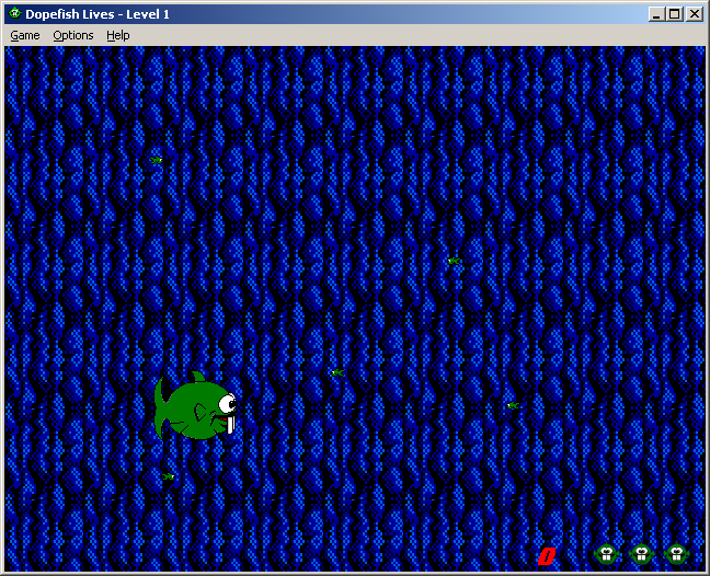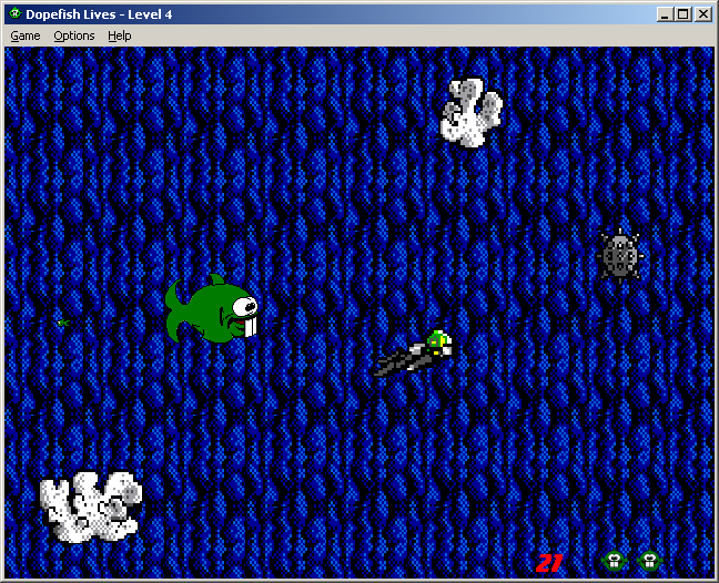 Dopefish Lives! drops you directly into the gaping maw of its titular hero—an insatiable green fish whose sole goal is to gobble up every smaller fish in sight. You control Dopefish’s chomping action with the Ctrl key, requiring precise timing to snap your jaws shut exactly as tiny shoals of fish swim by. This simple mechanic belies a surprising depth of skill, as a mistimed chomp means a missed opportunity (and no delicious dinner for our star).