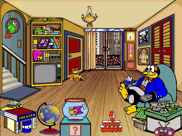 While Lenny’s Music Toons is primarily a collection of educational mini-games, it does weave in a light narrative framework to give context to the activities. Players explore Lenny’s colorful home, where each room is themed around a different musical concept: the living room hosts rhythm challenges, the attic features melody puzzles, and the backyard invites players to experiment with percussion.
