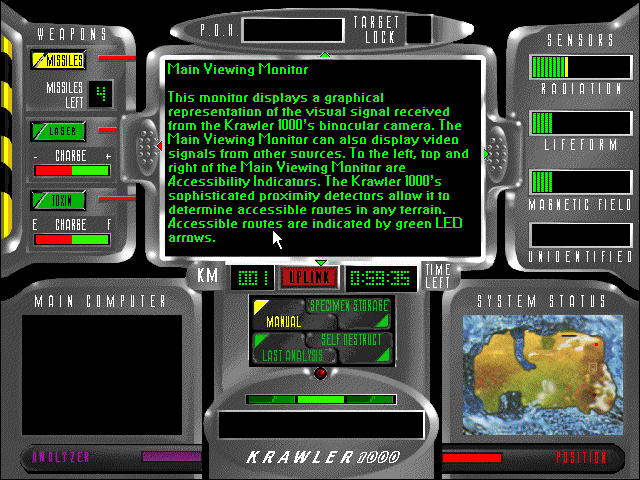 The inclusion of three CD’s worth of QuickTime video clips for scene transitions delivers a cinematic veneer to every decision. While the clips can feel rigid or repetitive if you backtrack too often, they inject a sense of presence as the tank rumbles over roots or squeals around corners. Controls are straightforward—directional choices, a scan button, and an action button—but the reliance on pre-recorded footage means input lag can sometimes interrupt the immersion. Still, fans of classic FMV adventures will appreciate this hybrid approach to exploration and puzzle solving.