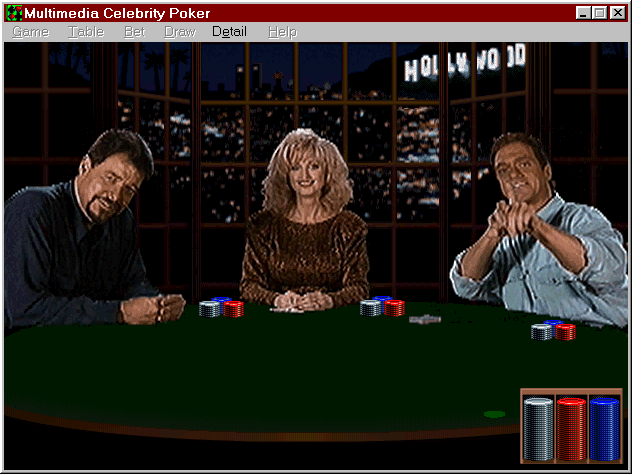In an era when digitized video was still a novelty, Multimedia Celebrity Poker stands out for its pioneering green-screen integration. New World Computing, under the direction of Jon Van Caneghem, filmed each celebrity against a clean backdrop, allowing developers to composite their full-motion video clips seamlessly around the poker table. The result is surprisingly immersive: your virtual opponents shuffle, deal, and react with fluidity that belies the hardware constraints of the time.