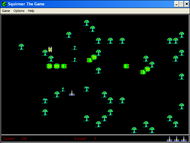 Squirmer The Game delivers a fast-paced arcade experience that feels both familiar and fresh. You pilot a nimble mini-spaceship through the lower half of a lush garden-themed playfield, taking aim at the writhing centipede known as the Squirmer. Every shot you take can either shorten his length or, if you hit him in the middle, split him into two aggressive copycats—creating a constant sense of tension as you carefully plan each blast.