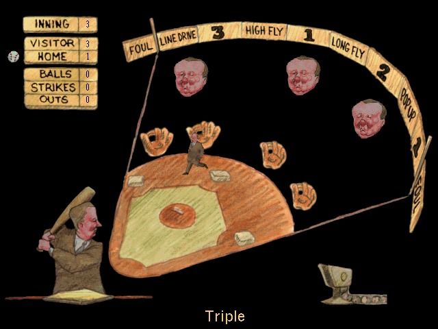 Take Your Best Shot offers three mini-games—crude interpretations of Breakout, Pong, and a baseball batting challenge—all wrapped in Bill Plympton’s mischievous animation style. At its core, the trio of arcade classics plays much like you remember, but with a distinctly cartoonish twist. Each mode is simple to pick up: move your paddle, line up your shot, and watch the puck, ball, or animated head fly. However, the physics feel somewhat off-kilter, reflecting the game’s intentionally unpolished design rather than precision gameplay.
