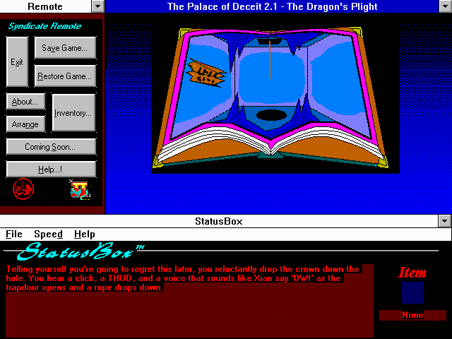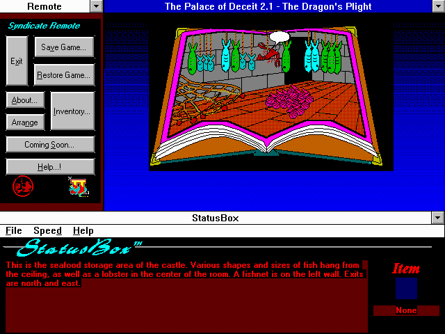The Palace of Deceit: The Dragon’s Plight places you firmly in control of Nightshade, an imprisoned dragon who must navigate a sprawling castle full of secrets and traps. The core gameplay revolves around exploration and puzzle-solving, with a heavy emphasis on “pixel-hunting” interactions—hovering your cursor across the screen until it changes shape to indicate a hotspot. Once discovered, these hot zones allow Nightshade to pick up items, operate mechanisms, or engage in dialogue, each action bringing him closer to freedom and vengeance.