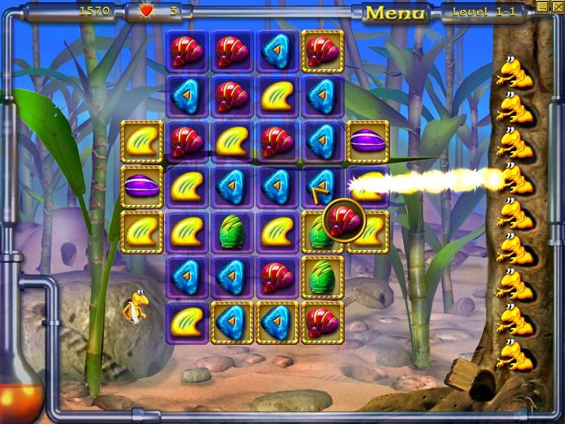 A-B-O-O: Plumeboom’s Friends delivers a solid match-three puzzle experience with a few clever twists that keep the mechanics fresh. You control your cursor with a floating crystal attached, and by clicking another crystal on the board you swap them to form a row of three or more identical gems. Any matching cluster you create will vanish, along with any same-type crystals touching them, and the golden tiles beneath will crumble away. The simple click-and-swap interface makes the game immediately accessible, even to players new to the genre.
