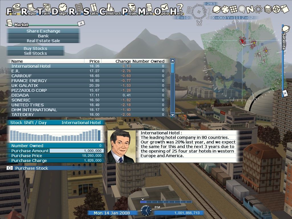 Beyond the iron rails, the game opens up a robust property market. You can develop hotels, high-rise apartments, ski resorts, and even famous landmarks like Big Ben or the Eiffel Tower to attract tourists and boost regional growth. These developments feed back into your rail network, creating a satisfying feedback loop: well-placed resorts bring in holiday-makers, while new office towers need efficient commuter trains to succeed.