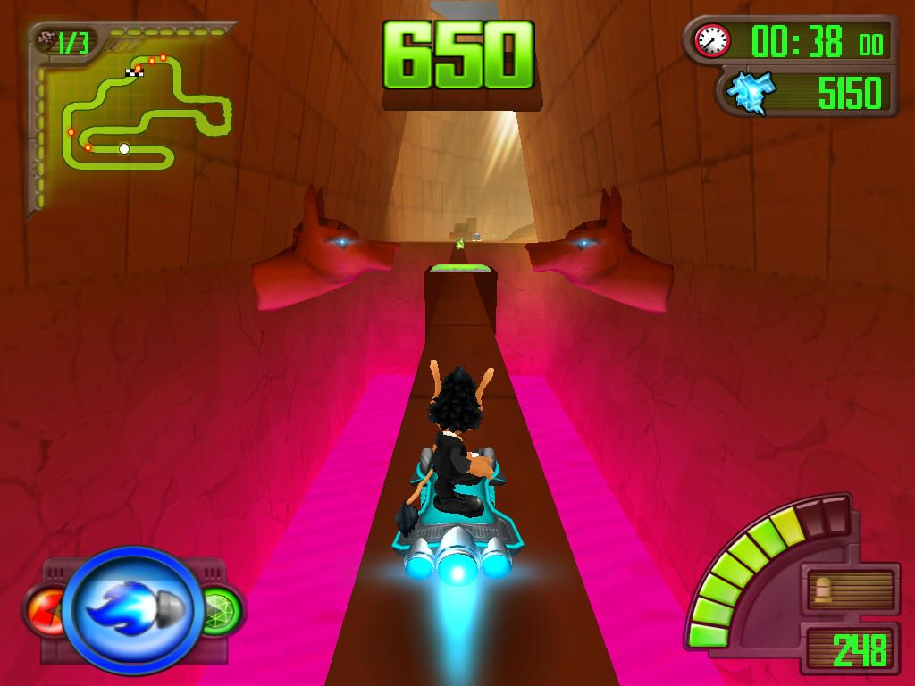 Agent Hugo: RoboRumble delivers a pulse-pounding blend of high-speed racing and platform mechanics that keeps your adrenaline levels soaring. Steering Hugo atop his trusty hoverboard, TEX 2000, you’ll dash through nine meticulously designed levels spread across space stations, arid deserts, and the neon-lit streets of Aquapolis. The controls are responsive, allowing for precise drifts, accelerations, and mid-air maneuvers that feel incredibly satisfying when executed just right.