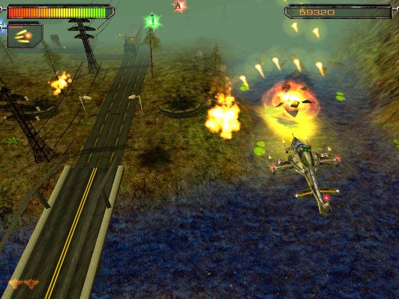 Power-ups play a crucial role in extending the gameplay loop. Scattered throughout the 18 combat zones are weapon and missile upgrades, special bombs, and temporary shields. Grabbing the right power-up at the right moment can turn the tide of a hectic boss battle or help you clear waves of enemy installations with surgical precision. Since each level features unique terrain hazards—from anti-aircraft towers to minefields—learning when and how to deploy your special weapons is just as important as mastering the basic forward fire.