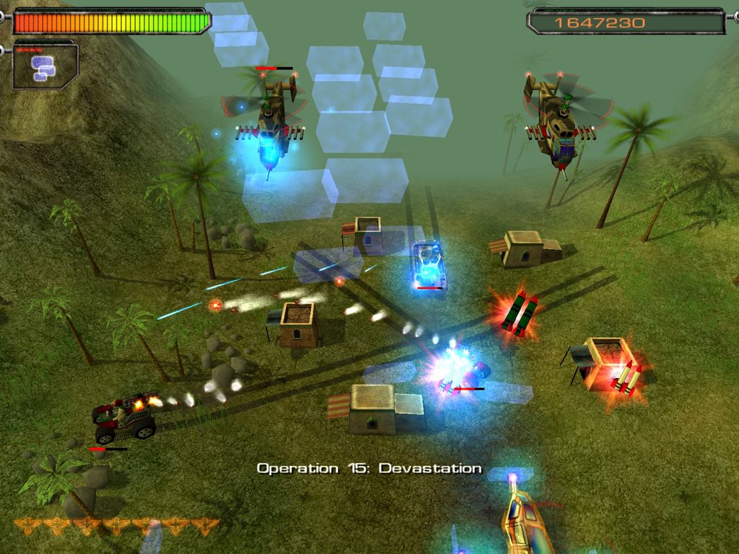 AirStrike II: Gulf Thunder picks up where its predecessor left off, throwing you straight into the cockpit of a heavy battle helicopter to thwart the N.I.T.O. terrorists’ latest plot. The core mechanics remain faithful to the vertical shooter tradition, but the ability to seamlessly switch between an angled 3-D perspective and a classic top-down 2-D view adds depth and strategic variety. Whether you’re weaving between enemy fire in 3-D or lining up precision strikes in 2-D, each mode brings its own set of challenges and thrills.