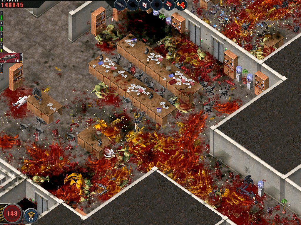 While Alien Shooter: Fight for Life retains the retro-inspired isometric view of the original, it introduces refined sprite detail and atmospheric effects that lend more depth to the desolate research complex. Blood splatters and alien corpses now linger longer on the screen, accentuating the brutality of each firefight. Lighting effects—especially in dimly lit corridors—cast ominous shadows that heighten the tension as you explore new areas.