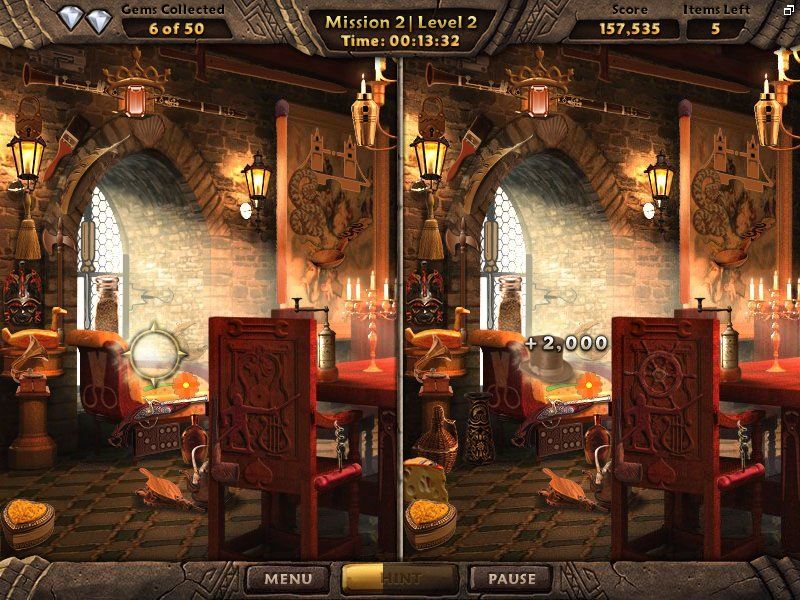 The scoring system strikes a balance between urgency and exploration. Quick discoveries yield bonus points, but each misplaced click carries a penalty—up to 1,000 points if you click wildly in rapid succession. Hints are available via a bar at the bottom of the screen, refilling slowly after each use, with each hint costing 5,000 points. For players who relish a more leisurely pace, collecting two hidden jewels per level unlocks two untimed bonus modes: Unlimited Seek & Find and an extra Spot the Differences challenge.
