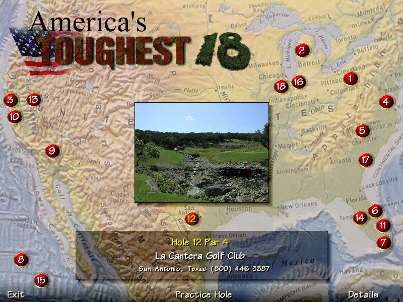America’s Toughest 18 immediately sets itself apart by gathering the most challenging holes from courses across North America into a single gauntlet. Rather than offering a handful of full layouts, the game curates eighteen signature tests—each with developer-provided background descriptions and video overviews that prepare you for the formidable terrain ahead. From blind tee shots to brutally contoured greens, every hole feels like a unique puzzle demanding careful club selection, trajectory control, and the occasional heroic recovery shot.