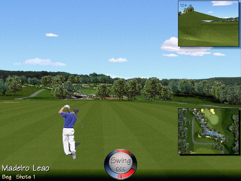 Golfer models and swing animations are built from digitized footage, giving each character a lifelike motion profile. While you’re limited to six distinct animations, each one offers a pleasing degree of fluidity—though occasional clipping can occur when your avatar interacts with uneven terrain. Overall, the photographic approach delivers an immersive vista, even if you occasionally notice repetition in background textures.