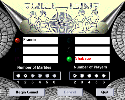 Visually, Mehen opts for a clean, minimalist board design reminiscent of early shareware titles. The spiral path is rendered in warm sandy tones, accented by hieroglyphic motifs that reinforce the ancient setting. Marble tokens and the lion avatar stand out in jewel-like colors, making it easy to track each player’s progress.