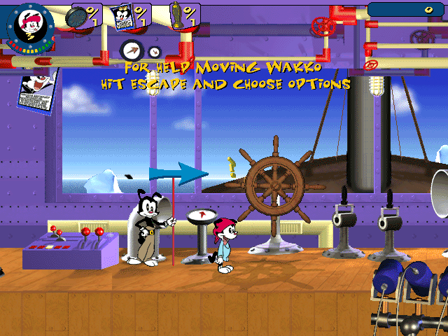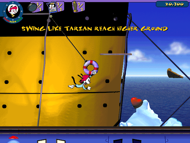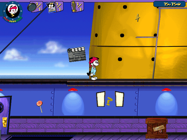 The visual presentation of Animaniacs: A Gigantic Adventure perfectly captures the zany, hand-drawn charm of the original cartoon series. While the game plays on a 2D plane, the environments are rendered in lush 3D, with dynamic camera pans that highlight detailed backdrops—whether you’re dashing through shadowy sound stages or romping across the deck of a luxury ocean cruiser. The color palette is vibrant, popping with pinks, greens, and yellows that keep each level feeling fresh and alive.