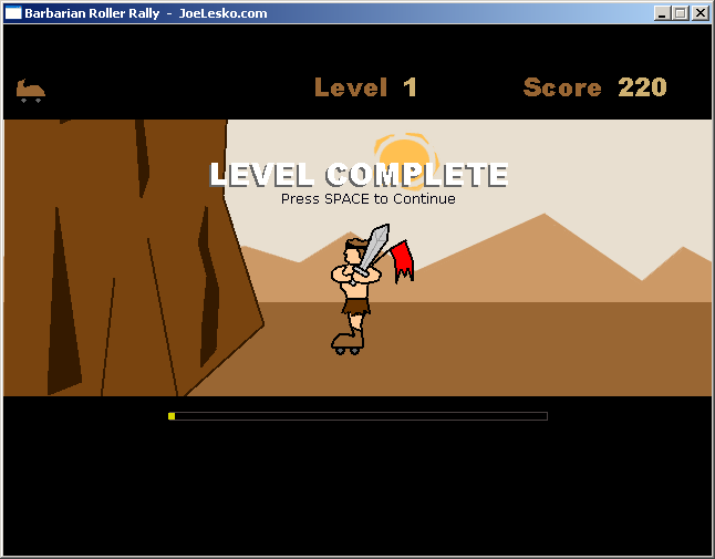 Barbarian Roller Rally takes the simple left-to-right momentum of classic arcade runners and injects it with over-the-top swordplay and 1980s roller-skating flair. You guide a loin-clad warrior through a series of increasingly hazardous caverns, each littered with jagged stalagmites, rock piles, and grotesque humanoid adversaries. The core loop is instinctive: roll forward, time your jumps to clear obstacles, and swing your blade to decapitate anything that dares stand in your path.