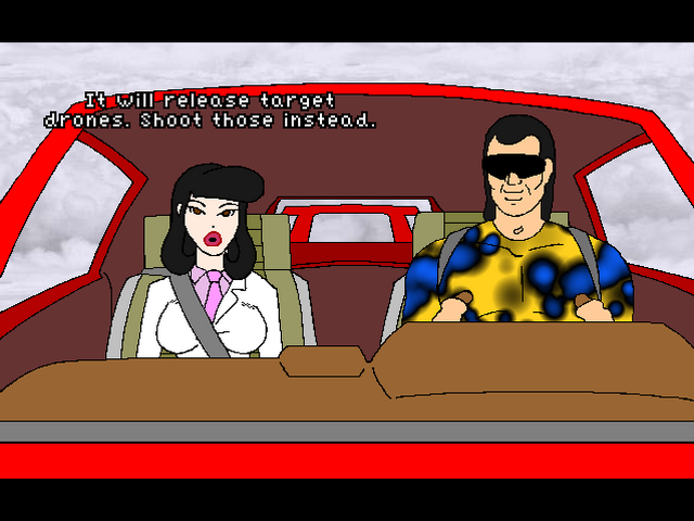 Beneath its arcade sheen, Barn Runner 2 weaves an offbeat narrative driven by the antics of detective Prick Peckard. Two weeks after vanquishing the rogue running bot in The Armageddon Eclair, Peckard’s penchant for impulsive heroics lands him in yet another precarious situation: a crash-landing in a darkened hangar courtesy of a malfunctioning land-o-matic. His tractability of heights forces him to shroud his car windows in darkness, setting a tone of brimstone humor from the outset.