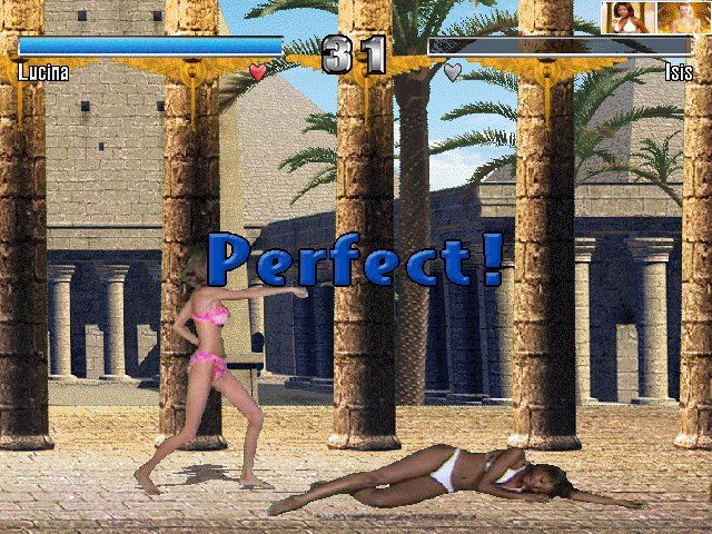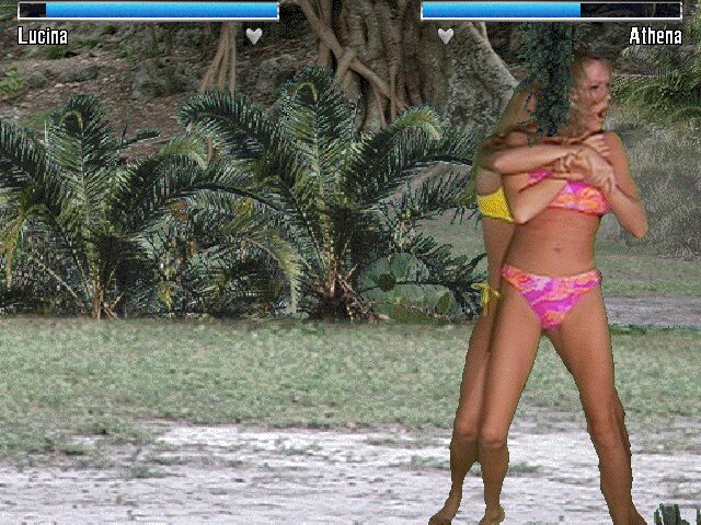 Visually, Bikini Karate Babes leans heavily on pre-recorded live-action footage, which gives it a distinct look compared to sprite-based or fully 3D-rendered titles. The star attraction is obviously the realistic video sequences, capturing each fighter in various poses and combat animations. While this approach provides a novelty factor, the resolution and color grading can feel dated, especially on modern displays where pixelation and compression artifacts become more apparent.