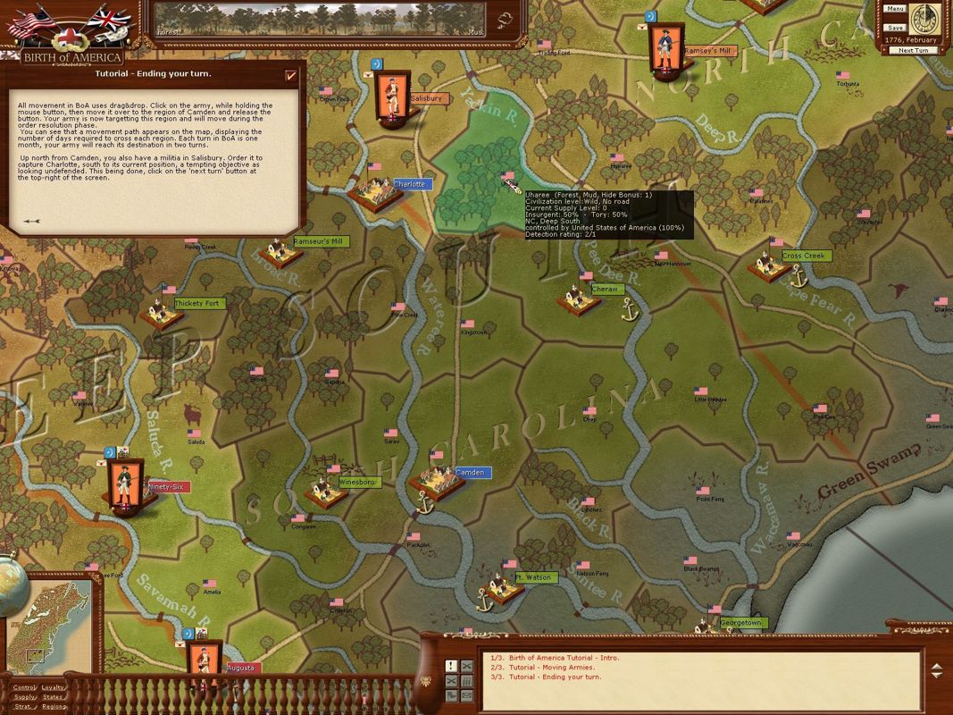 While Birth of America doesn’t push the boundaries of modern 3D visuals, its top-down, board-game style map is both functional and charming. Units are represented by distinct icons and color schemes that make it easy to differentiate between British redcoats, American rebels, French forces and various indigenous allies. The simplicity of the graphics keeps the screen uncluttered even when multiple armies converge on a single province.