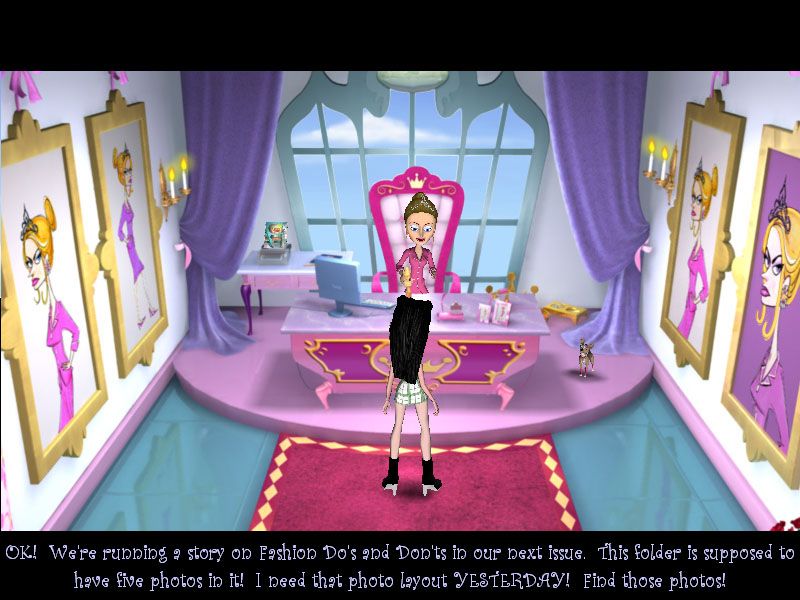 The game’s environments are varied, ranging from glossy city streets and chic magazine offices to breezy beachside locales. Each area is populated with fashion boutiques, editorial studios, and stage setups that feel like miniature theme parks of style. Texture quality is appropriate for the era, and though some background elements appear a bit flat up close, the overall presentation maintains a consistently fun and polished look.