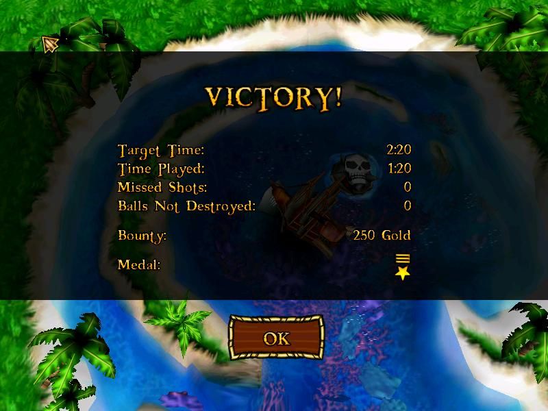 Visually, the game leans into a crisp, colorful palette that plays exceptionally well on both large monitors and smaller laptop screens. Each marble is rendered with subtle shading and a glossy sheen, easily distinguishing red from orange or teal from blue at a glance. The pirate-inspired backdrop—complete with weathered wood textures, roiling seas, and misty horizon lines—gives every level a cohesive, maritime atmosphere without overwhelming the playing field.