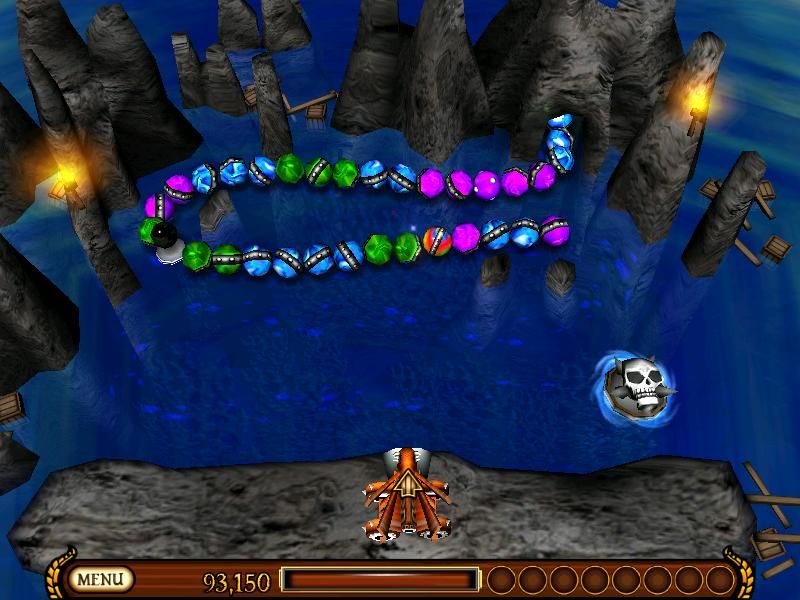 As you progress, level design cleverly alternates between static rotation and side-to-side sliding of your cannon, keeping your aim fresh and your reflexes sharp. Power-ups pepper the later stages, ranging from a time-slowing bubble to a “reverse flow” gem that sends the chain retreating back toward the spawn point. Strategically deploying these tools—whether purchased from the in-game shop or earned through medals—adds a welcome layer of resource management that prevents the core marble-popping loop from feeling repetitive.