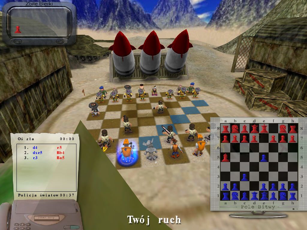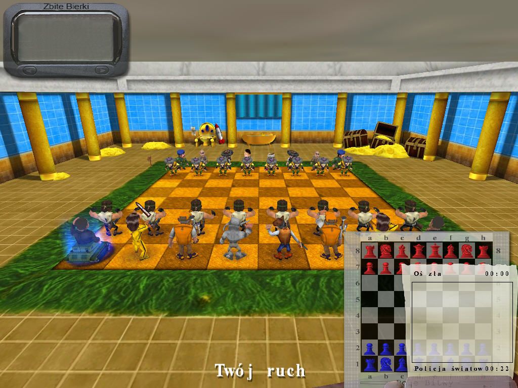 The user interface combines a 3D animated battlefield with a traditional top-down view of the board in the lower right corner. This dual display ensures you never lose sight of tactical positioning while enjoying the animations. Whenever a piece moves, its character model strides across the board in a short walk cycle. If it captures an opponent, you’re treated to a brief fight animation—an entertaining flourish that, while nonessential, reinforces the game’s comedic charm.