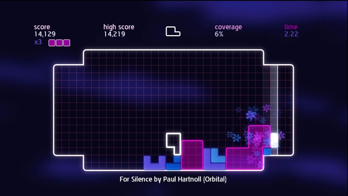 The user interface is uncluttered, featuring only the essentials: the upcoming piece preview, a timer bar, and a percentage meter that fills as you color more of the stage. Subtle animations—like the grid’s pulsating edges and the fluid sweep of the timeline marker—heighten the sense of rhythm without overwhelming your focus. Even during hectic Time Play sessions, the visuals remain clear and responsive.
