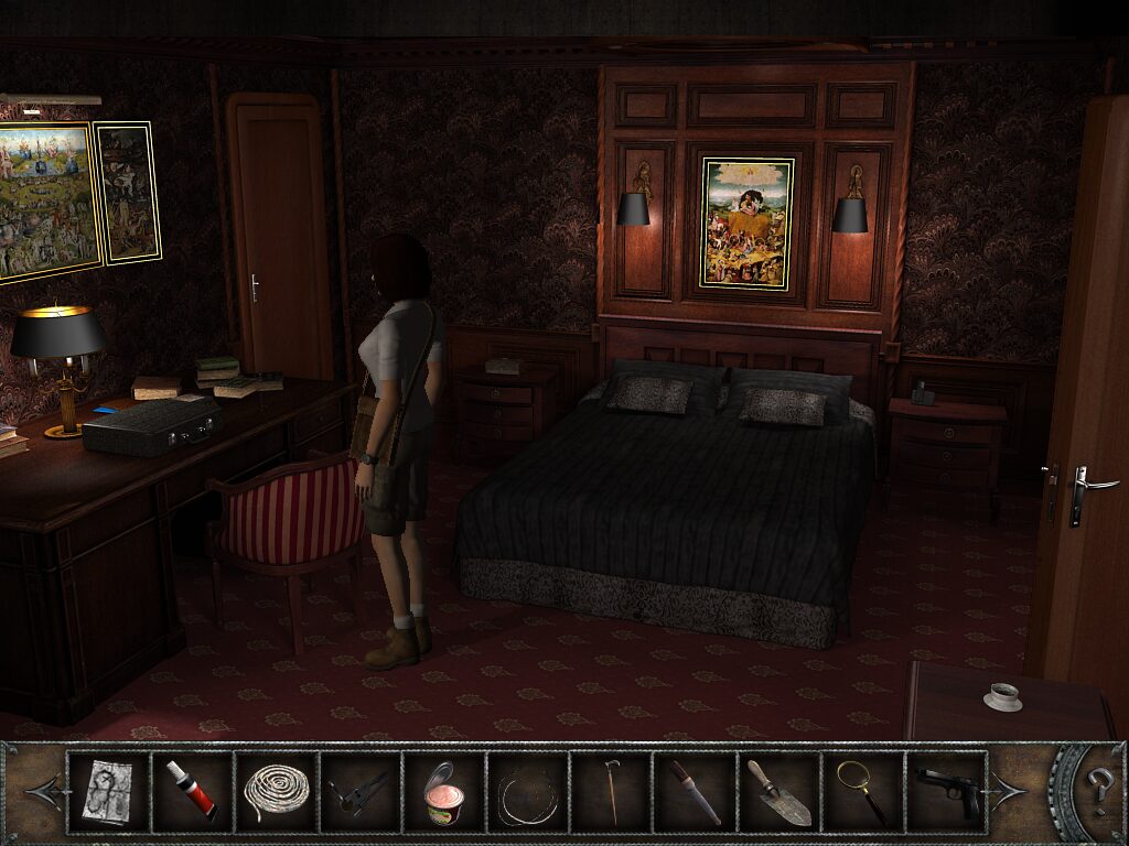 Chronicles of Mystery: The Tree of Life builds on the solid point-and-click foundations introduced in The Scorpio Ritual, delivering a familiar yet polished gameplay experience. Players guide Sylvie Leroux through a series of richly detailed environments, clicking on hotspots to investigate clues, gather artifacts, and unlock hidden compartments. The interface remains intuitive, with hotspot names displayed in the upper black bar and an optional reveal feature that highlights all interactive areas at the press of a question mark.