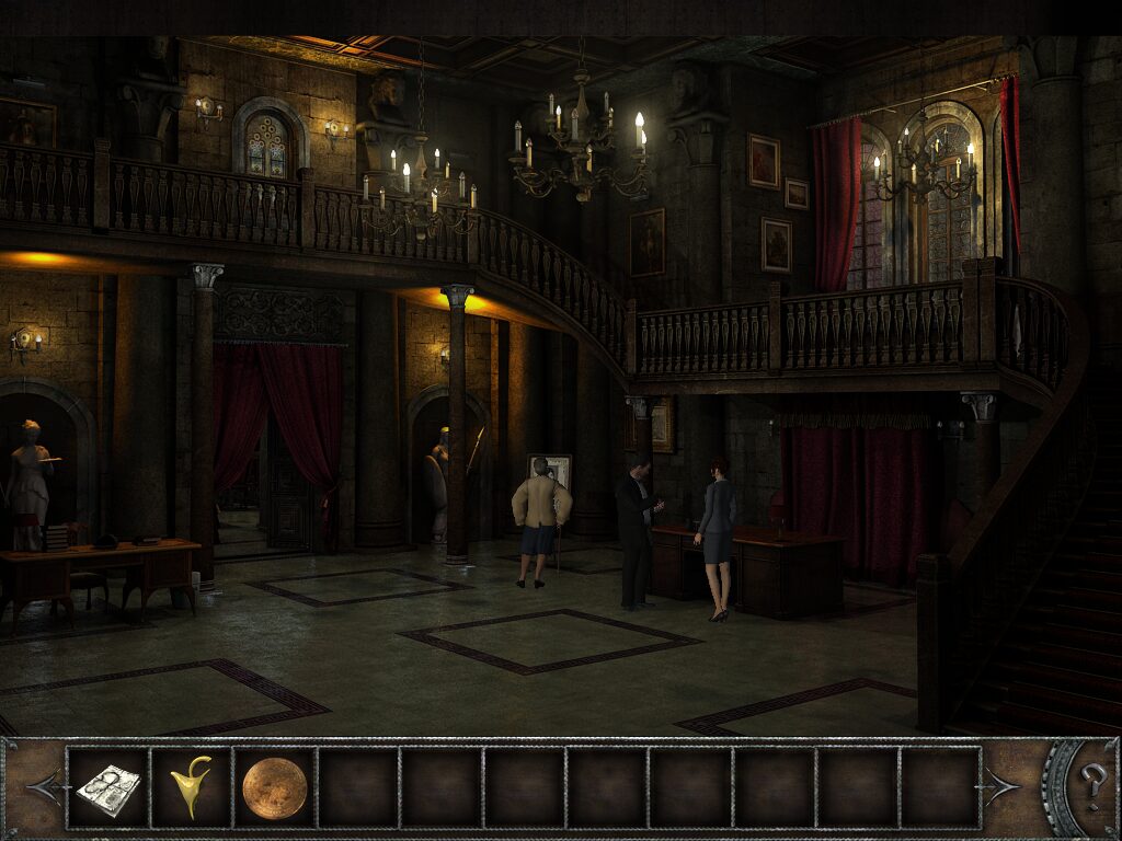 Character portraits and cutscenes maintain the slightly stylized realism of the original, effectively conveying Sylvie’s curiosity and the enigmatic count Georges de Saint-Germain’s steely determination. While animation is not the game’s primary draw, occasional character movements and expressive dialogue boxes keep interactions feeling dynamic rather than static.