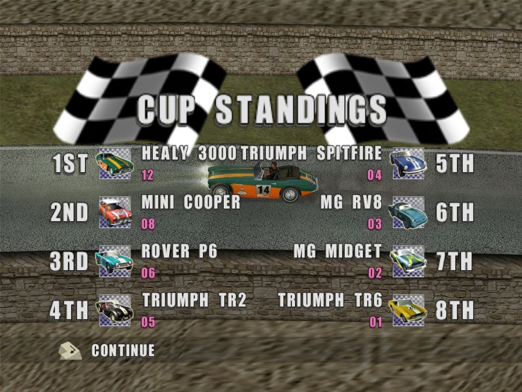 Classic British Motor Racing delivers a rich, nostalgia-filled driving experience centered on 13 iconic British models from the 1960s. Players begin by tackling Time Trials, where shaving seconds off the clock on any of the six available circuits unlocks cars one by one. Once a car is unlocked—Austin Mini Cooper, MGA MKII, MGB MKI, Austin Healey 3000, MG Midget, Triumph Spitfire, Triumph TR2, Riley RM, Triumph TR2 A, Rover P6, Triumph TR5, or Triumph TR6—it becomes available in all other modes, including the coveted secret car revealed only after mastering the initial dozen.