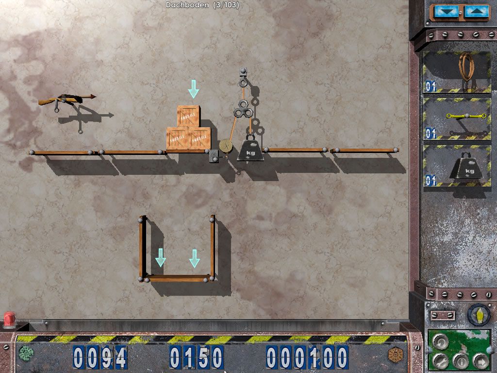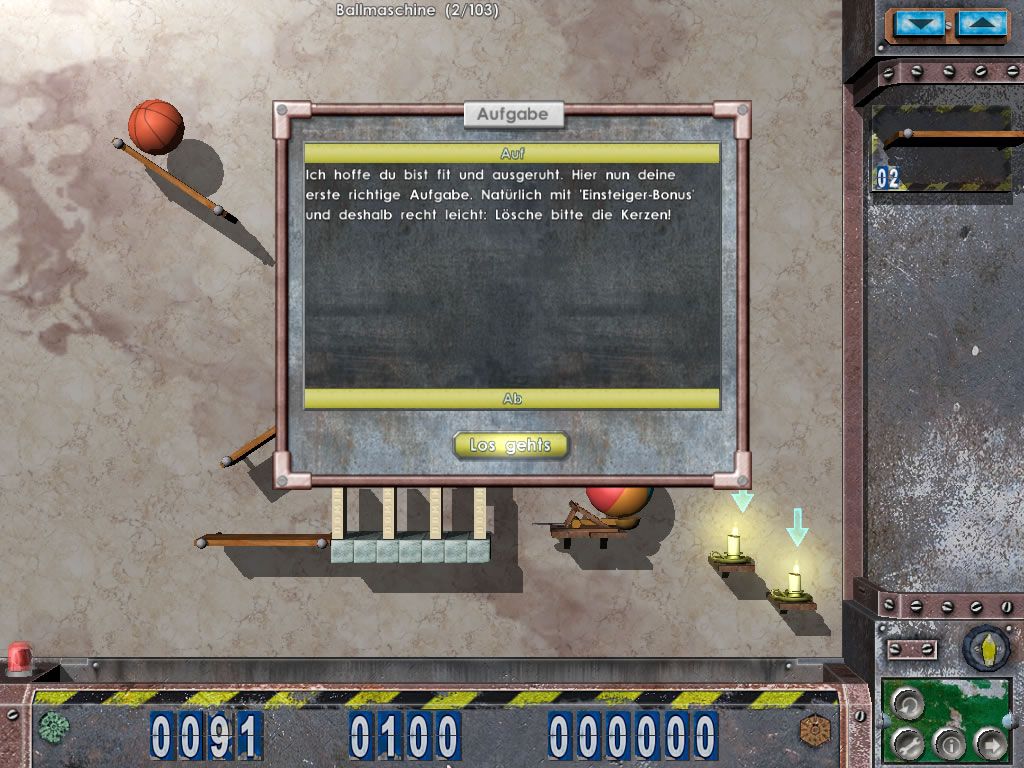 At its core, Crazy Machines: Neue Herausforderungen builds on the ingenious foundation set by Crazy Machines: Die Erfinderwerkstatt, offering over 100 fresh “experiments” that challenge your creativity and problem-solving skills. Each puzzle presents a specific goal—whether it’s extinguishing a candle flame, launching a basketball into a hoop, or activating a complex generator—and tasks you with arranging a motley assortment of contraptions to trigger a satisfying chain reaction. The sandbox-style level design encourages experimentation: try swapping a simple pulley for a springboard or replacing a rolling ball with a miniature rocket to discover new interactions.