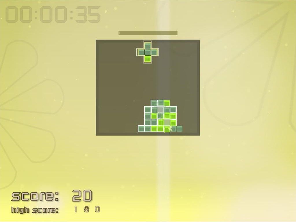 Animations are smooth and purposeful: a satisfying snap occurs whenever a cross lands intact, and the subsequent tumble of unsupported arms is quick but never jarring. The UI is straightforward, with a preview of the next cross shown in the corner and a clear display of your current score and level. There are no distracting visual flourishes, which keeps your focus locked on the playfield where every pixel counts.