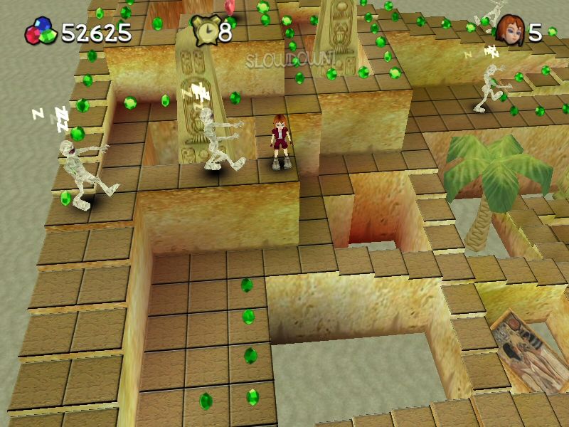Crystal Maze borrows the addictive chase-and-collect framework of classic arcade titles like Pac-Man, but it elevates the formula with a dynamic 3D isometric perspective. You guide Lily through 49 increasingly complex levels, each laid out on a grid of squares that contain Dream Crystals, obstacles, or empty spaces. Movement in all eight directions adds nuance: while lower minions stick to straight horizontal or vertical paths, higher-tier foes—including the fearsome Dream Reaper—can cut diagonally, keeping you on your toes.