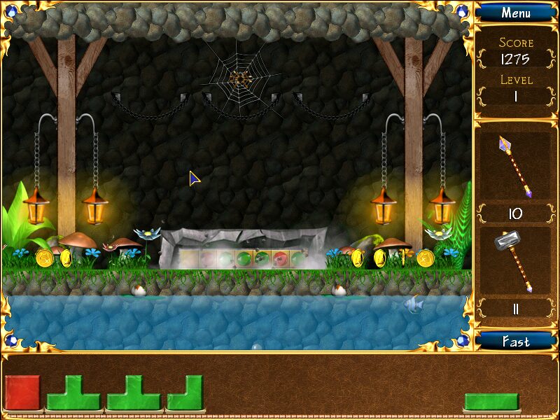 The challenge escalates when stray pieces accumulate at the bottom, bringing you perilously close to losing a life. Thankfully, you are equipped with a limited arsenal of magical tools: a hammer to smash unwanted tokens and a wand to zap away individual crystals. Each of these aids can be deployed up to ten times per playthrough, forcing you to weigh short-term relief against long-term survival.