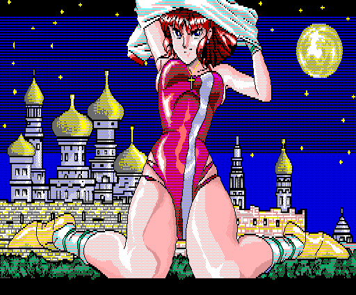 Visually, Cybernetic Hi-School Part 3 maintains the anime-inspired pixel art style that defined its earlier entries. Character portraits of Jung-Freud, Kazumi, and Noriko are richly detailed, capturing each heroine’s personality and aesthetic flair. Jung-Freud’s stern military uniform is rendered with crisp lines and subtle shading, while Kazumi’s elegant kimono-meets-catwalk ensemble shimmers with vibrant color. Noriko’s casual pilot gear recalls Gunbuster’s optimistic tone, complete with well-placed highlights that bring her model to life.