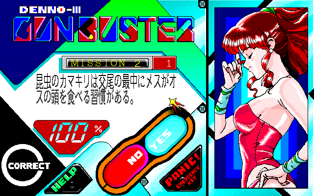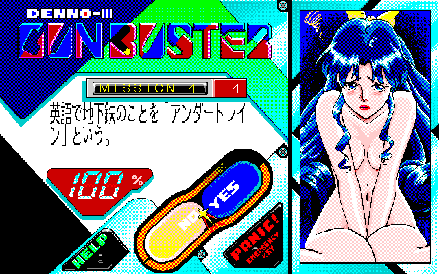 Cybernetic Hi-School Part 3: Gunbuster sticks closely to the strip quiz formula established by its predecessors, but adds an extra layer of fan appeal by focusing on Gainax’s iconic Gunbuster franchise. Players take on the role of an alpha-class “Top” cadet, vying for three keys to activate the colossal Gunbuster robot and defend humanity from cosmic threats. The quiz segments are divided among three Gunbuster heroines—Jung-Freud, Kazumi (oneesama), and Noriko—each guarding a key and delivering questions in their signature style.