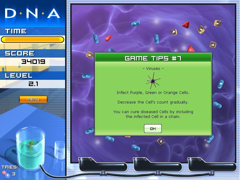 The occasional virus incursion raises the stakes: these pathogens latch onto cells, removing them from play unless you incorporate infected cells into your synthesis chains. This mechanic adds an extra layer of risk-reward, forcing you to choose between quick color matches or tactical rescues. Overall, D.N.A.’s gameplay loop is easy to pick up but rich enough to keep puzzlers engaged for hours.