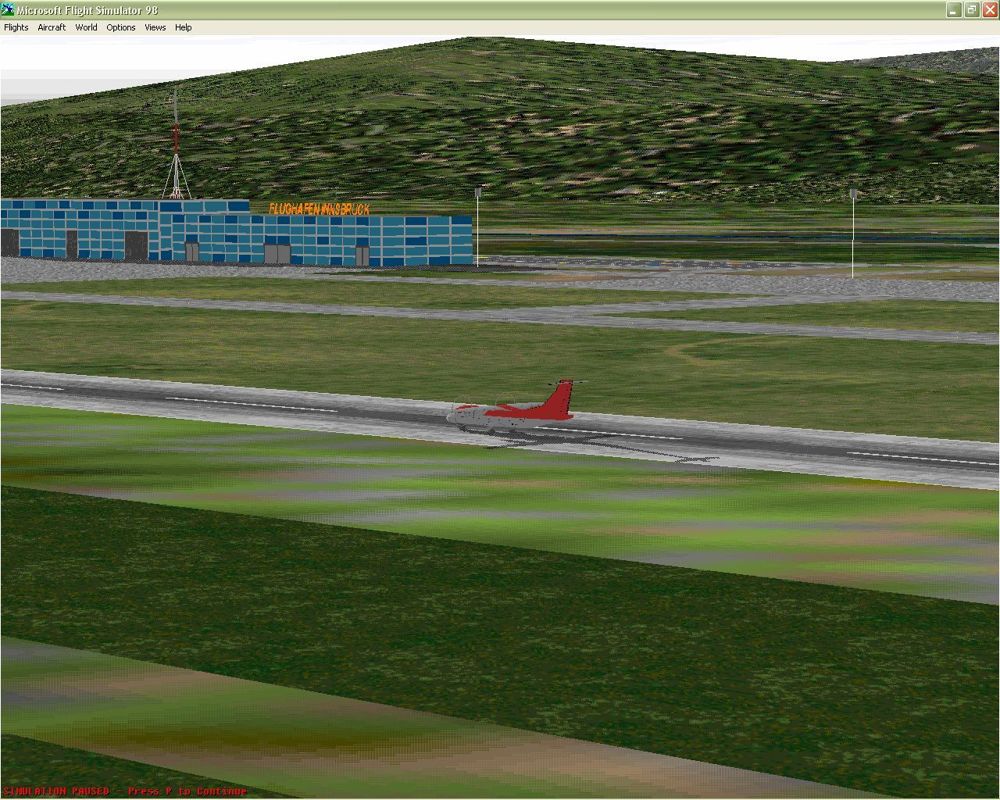 For a title released in the late ’90s, Dangerous Airports delivers surprisingly detailed scenery enhancements that stand out even today in Microsoft Flight Simulator 98. Each airport environment features carefully crafted runway textures, accurate terminal buildings, and contextual landmarks—such as the Vatican-like cityscape near Innsbruck and the classic U-shaped terminal of Berlin Tempelhof.